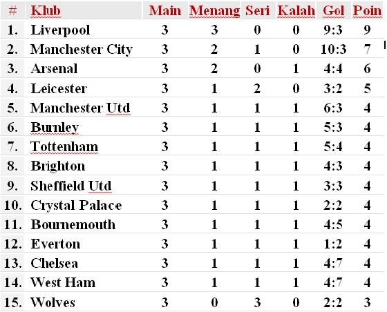 Klasemen Liga Inggris - Hasil Dan Klasemen Liga Inggris Liverpool Unggul 5 Poin Atas Man City : Untuk saat ini manchester city berhasil memimpin puncak klasemen dengan perolehan poin sempurna 9.